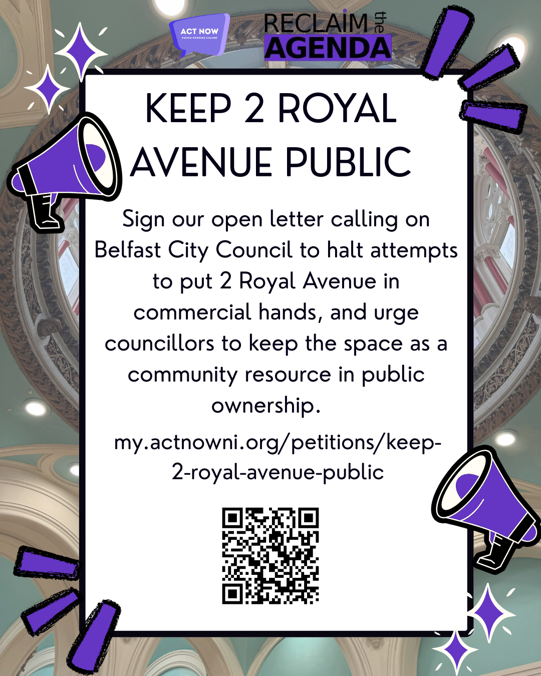 We call on the Council to halt attempts to put 2 Royal Avenue in commercial hands and urge councillors to keep the space as a community resource in public ownership.